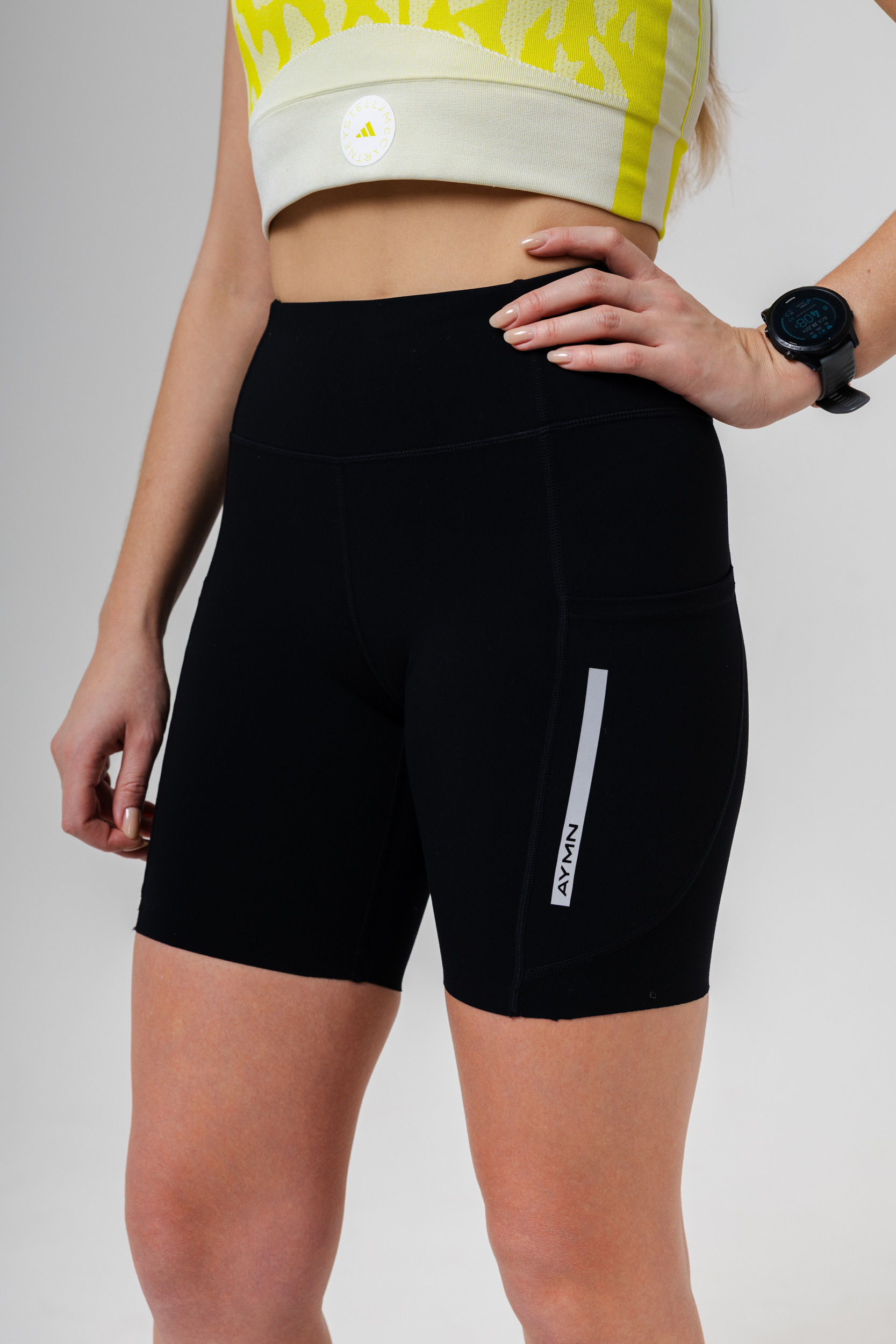 Модель оснащена двумя боковыми карманами для смартфона и необходимых мелочей. Высокий пояс обеспечивает уверенную фиксацию и комфортную посадку во время движения.