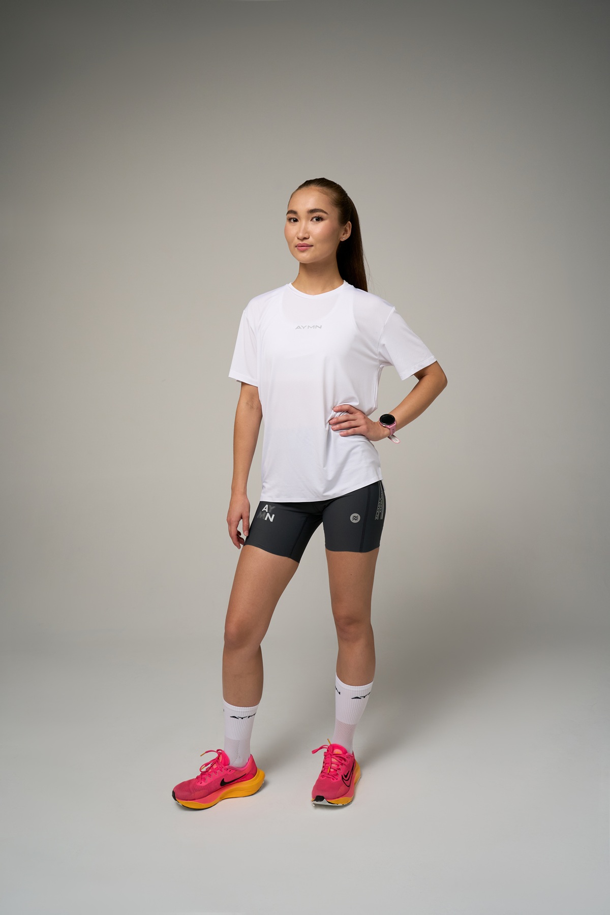 Белый цвет освежает образ и идеально подходит для пробежек и тренировок в жаркую летнюю погоду.
